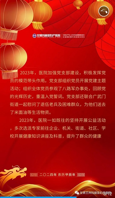 来源:甘肃玛丽亚妇产医院 发布时间:2023-12-31